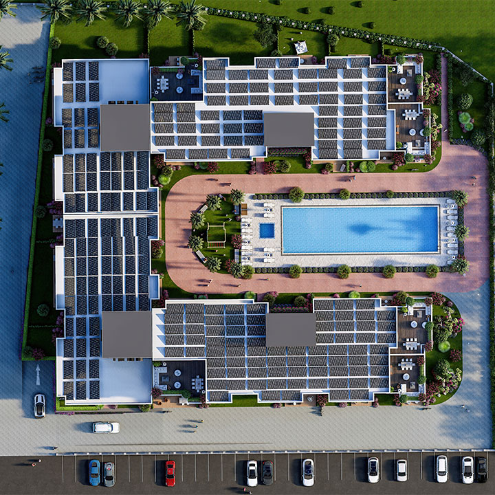 Park Yaşam Atlantis, çatısında bulunan güneş enerjisi panelleri sayesinde sürdürülebilir ve yenilenebilir enerji kullanımını benimser. Bu, hem çevreyi korumamıza yardımcı olur hem de enerji faturalarınızı azaltmanın anahtarıdır.
