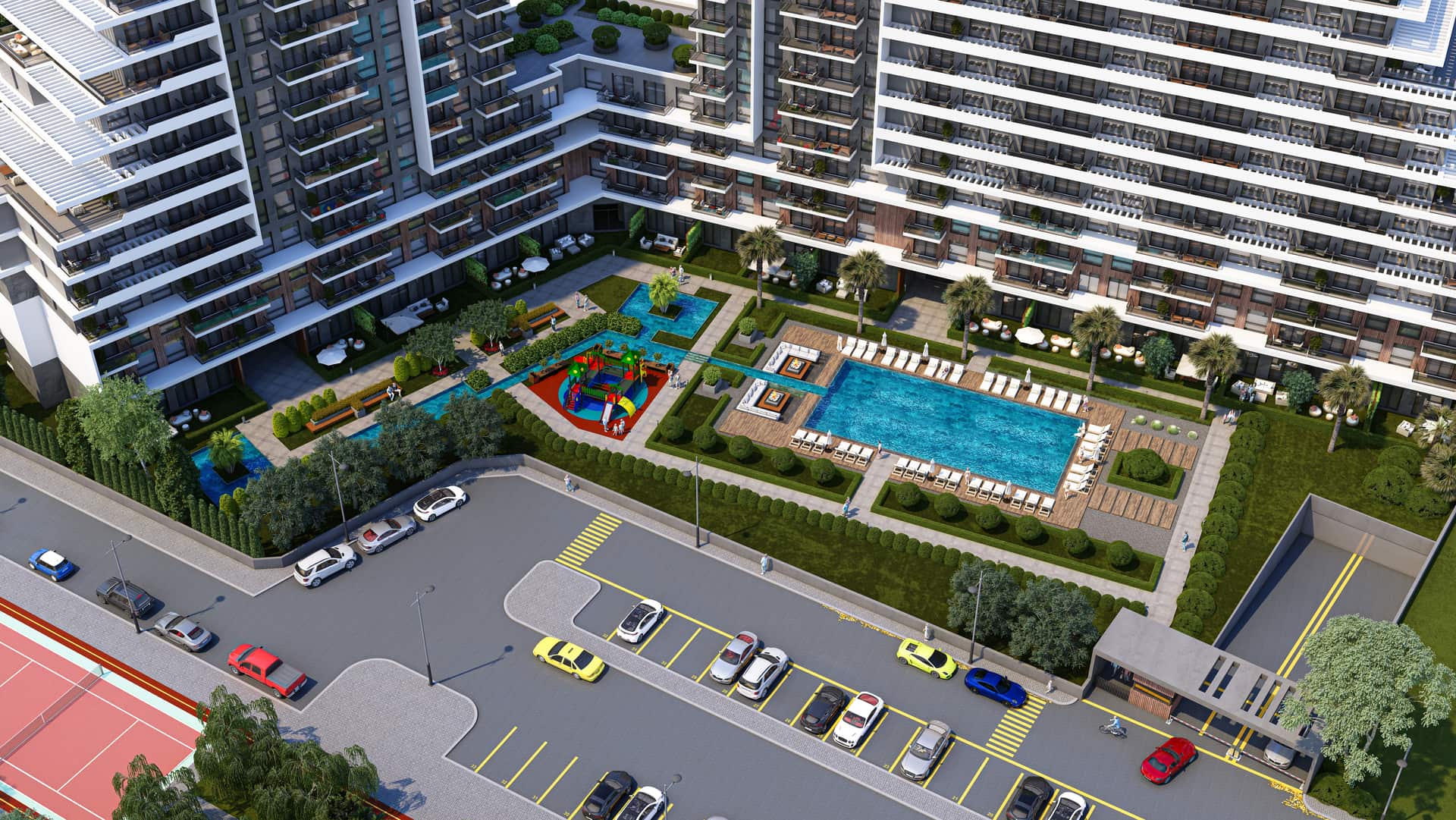Mia Park Bornova, şehrin merkezinde, modern yaşamın tüm ihtiyaçlarını karşılayan geniş bir proje olarak tasarlandı. 6.000 m² arazi üzerine inşa edilen ve 35.000 m²’lik geniş bir inşaat alanına sahip olan proje, hem estetik hem de fonksiyonelliği bir araya getiriyor. Yüksek katlı yapısı ile şehir manzaralarına hakim olan Mia Park Bornova, konforlu ve modern bir yaşam sunuyor.