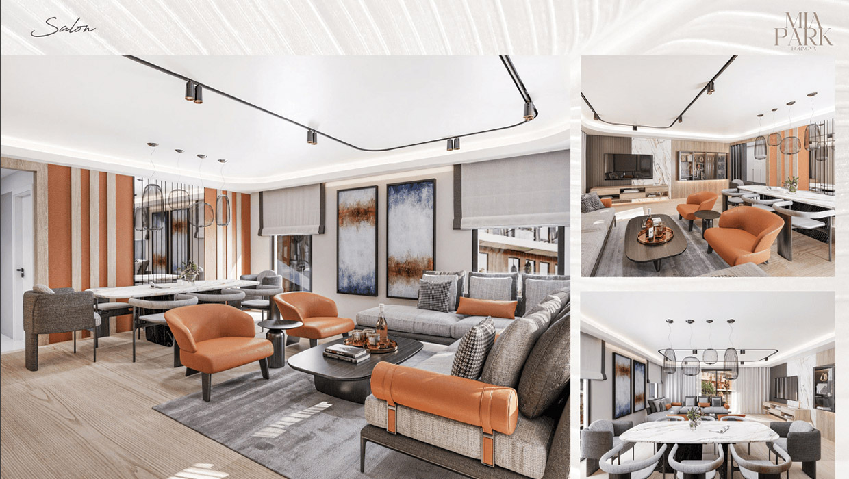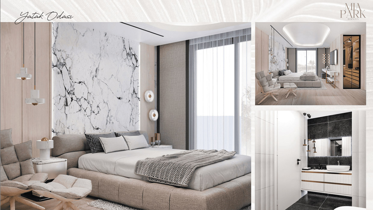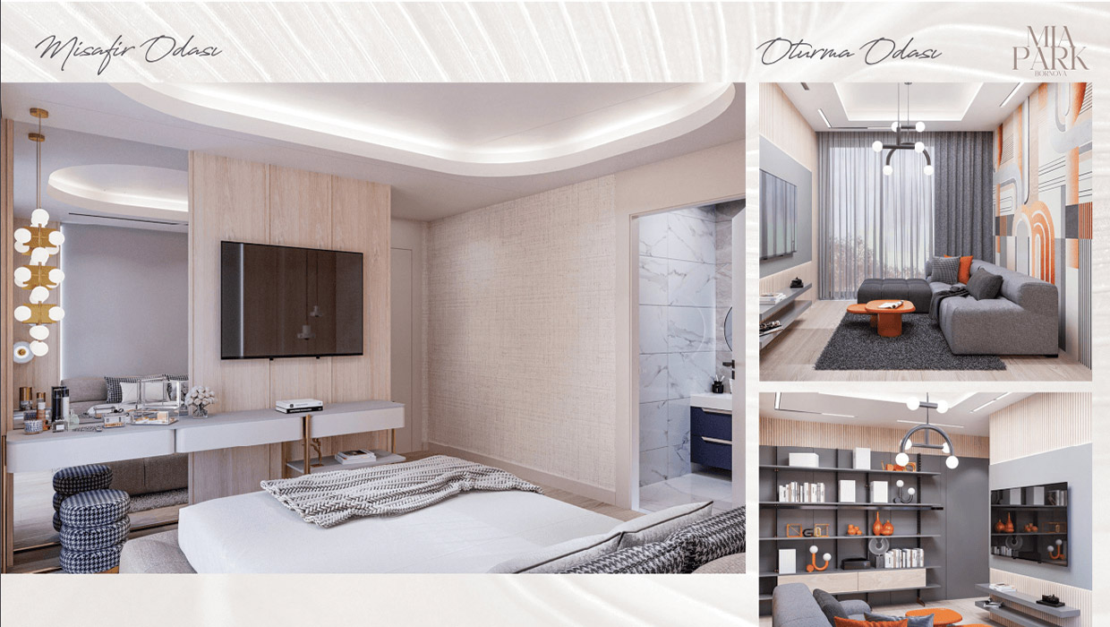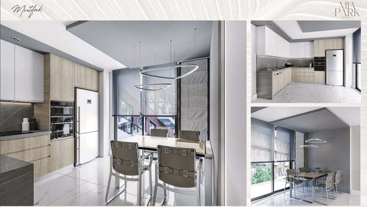 Mia Park Bornova’nın 1+1, 2+1 ve 3+1 daireleri, modern ve fonksiyonel bir yaşam sunmak için tasarlandı. Isı yalıtımlı dış cephe, ankastre mutfaklar, özel tasarım dolaplar ve banyolar gibi özellikler, estetikle kullanışlılığı bir araya getiriyor. Yüksek tavanlar ve geniş camlarla aydınlık ve ferah yaşam alanları sağlanıyor.