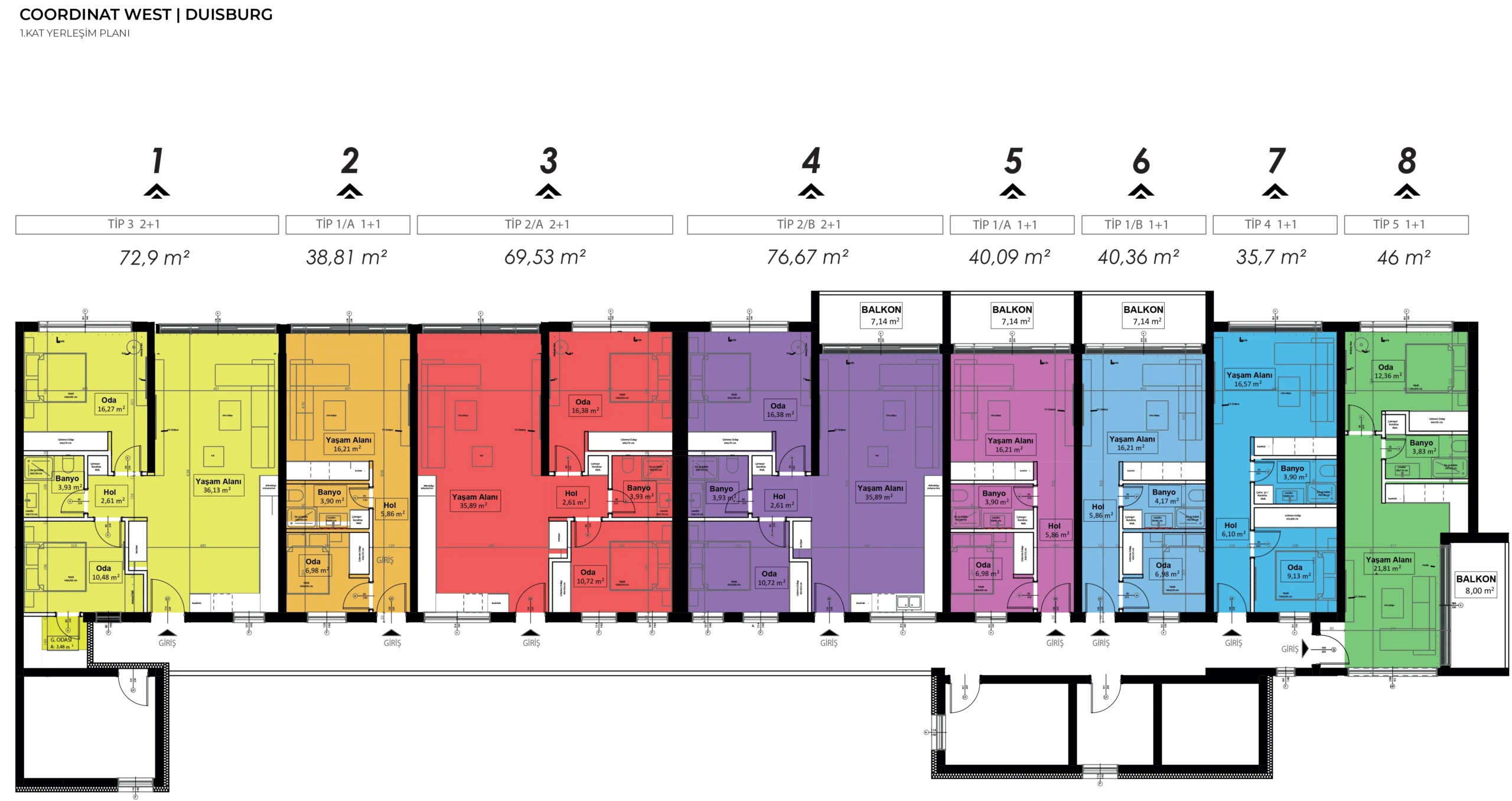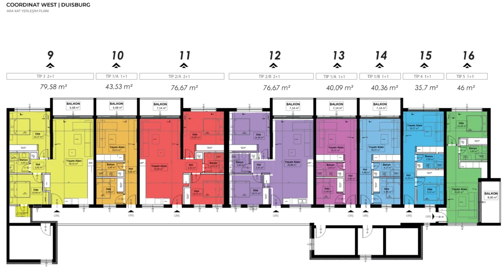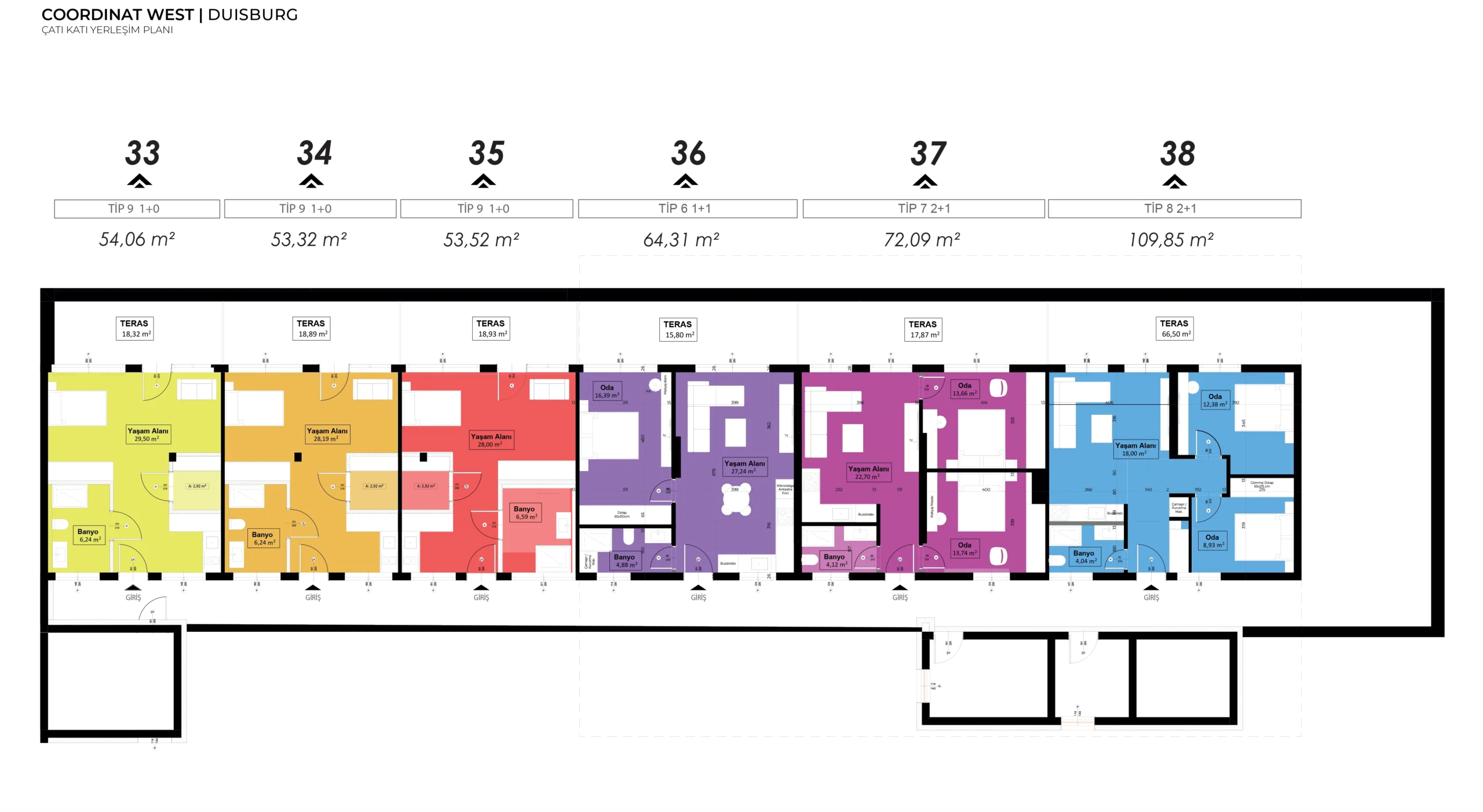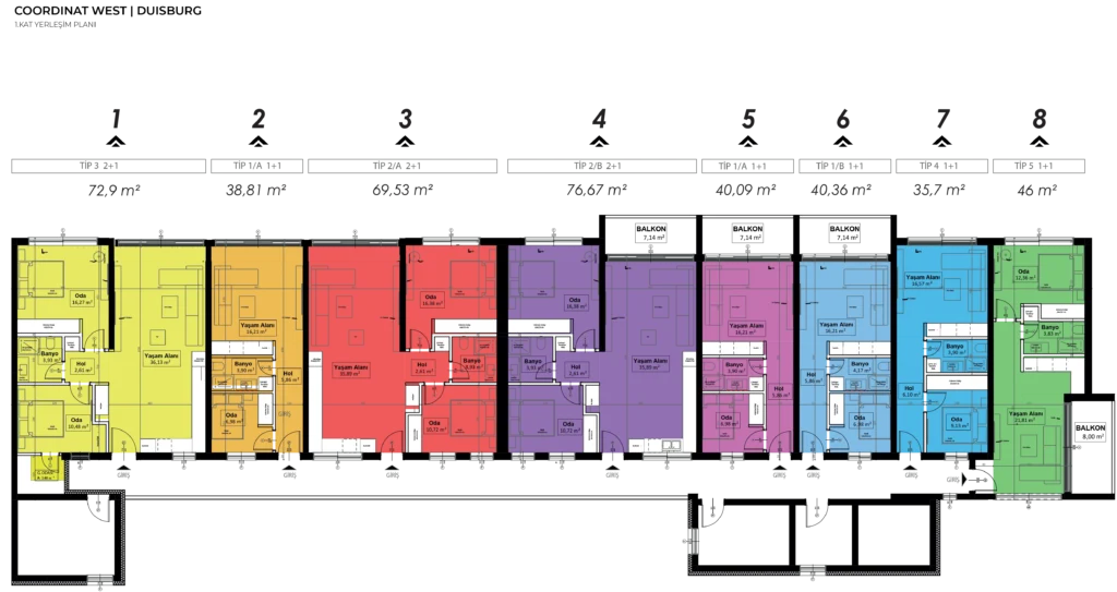 Coordinat West projesinde toplam 38 daire bulunmaktadır.