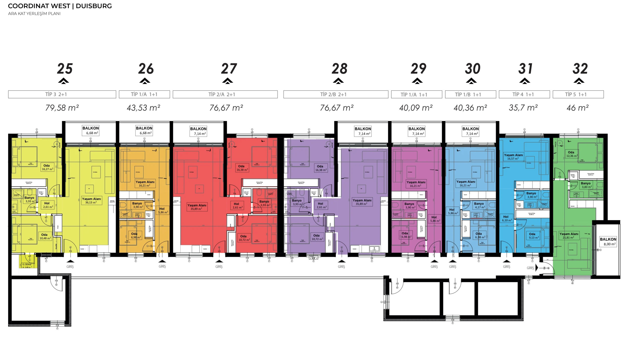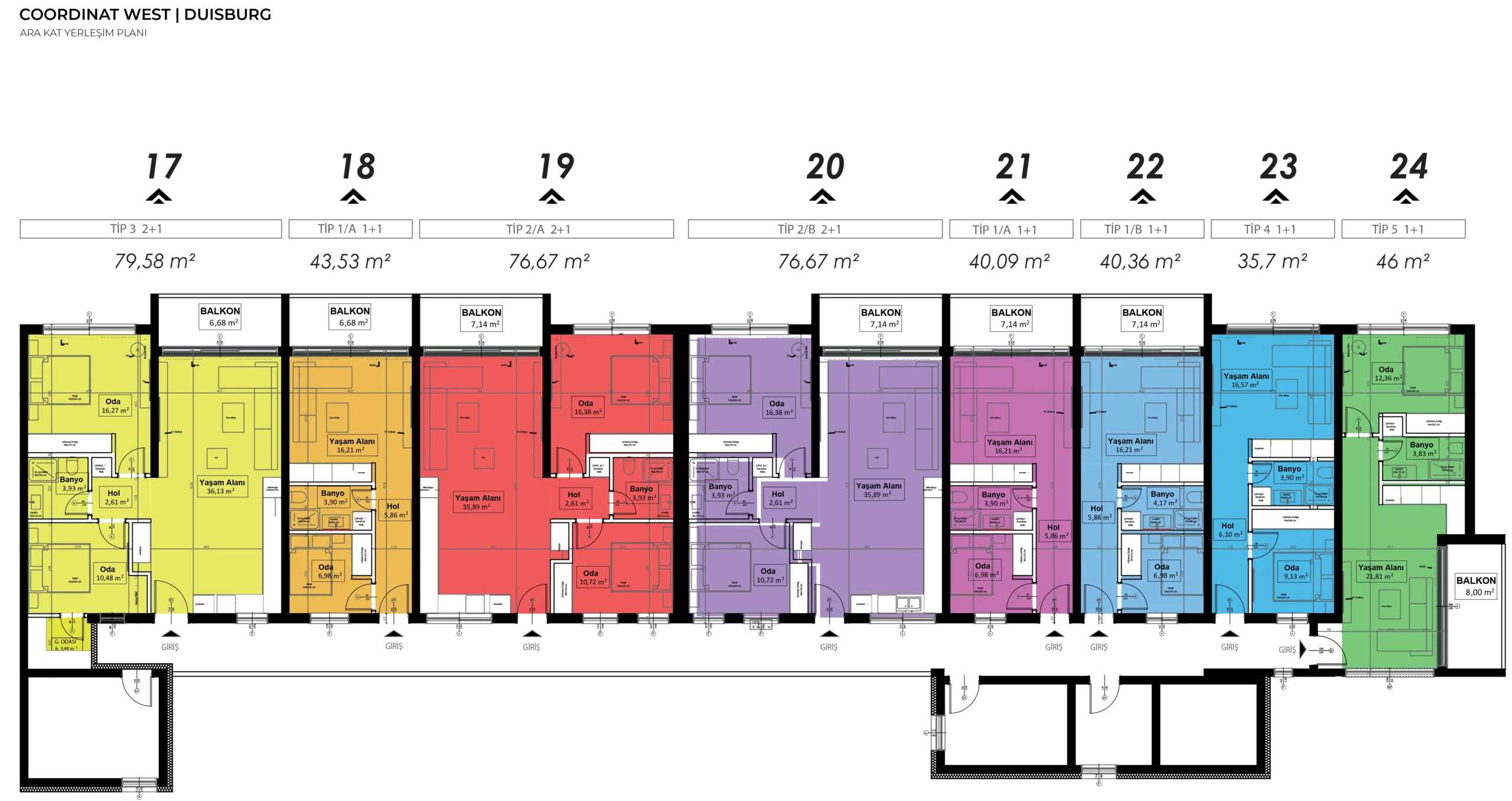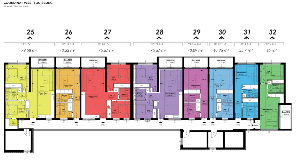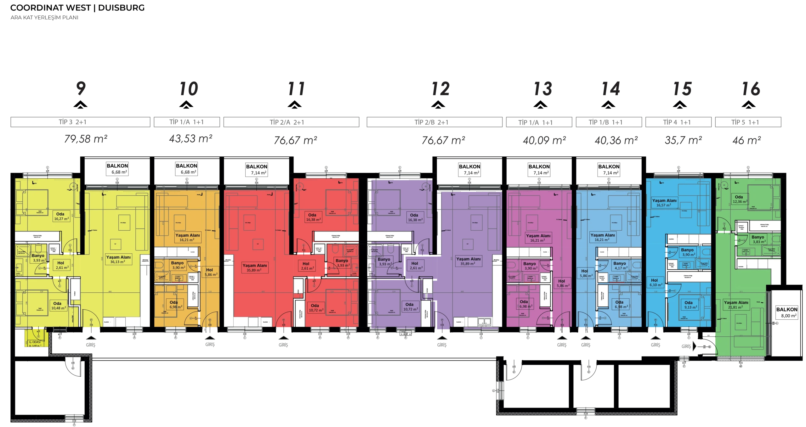 Coordinat West projesinde toplam 38 daire bulunmaktadır.