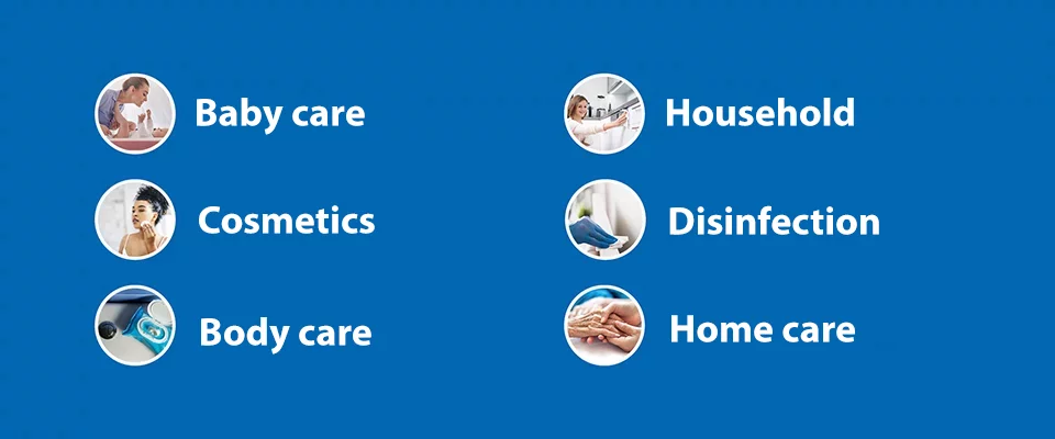 Using the latest technology and processes, we produce products for a wide range of applications. These include disinfection, cleaning and care products, all of which are developed with a special focus on user-friendliness and safety. In addition to the traditional medical fields, our products are also used in the food industry, occupational safety, veterinary and industrial sectors.