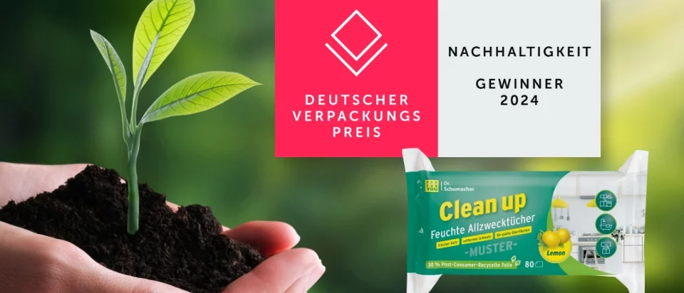 Sürdürülebilirlikte Birincilik Ödülü: Dr. Schumacher, Islak Mendil Ambalajlarında Geri Dönüştürülmüş Malzemelerin Kullanımında Yenilikçi İşbirliği için Alman Ambalaj Ödülünü Aldı