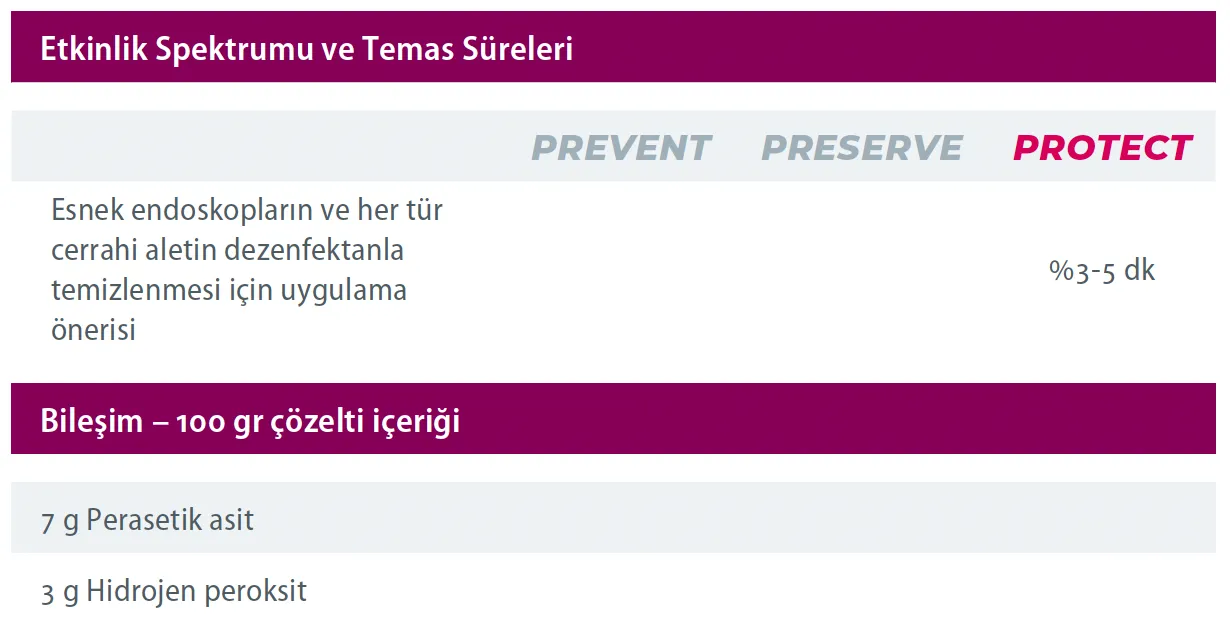 DESCOTON PAA, perasetik asit ve hidrojen peroksit bazlı, yüksek düzeyli bir konsantre dezenfektandır. DESCOTON PAA, yarı kritik aletler ve endoskoplar için yüksek düzeyli dezenfeksiyon sağlar. Isıya dayanıklı ve hassas malzemelerde kullanıma uygundur. Aldehit ve fenol içermez.