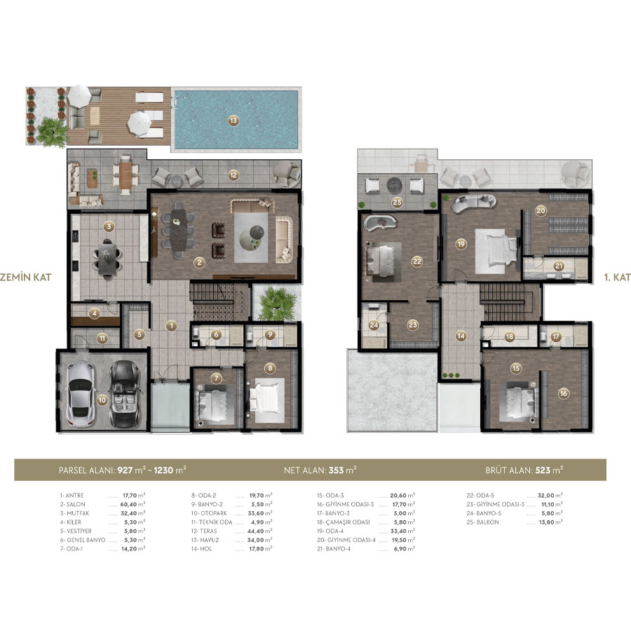 Günümüz modern mimarisinin özgün bir yorumu olan Luna, ailenizin konforunu ve rahatlığını ön planda tutarak özenle tasarlandı. Estetik açıdan büyüleyici detaylarla bezeli 5 yatak odalı bu villa, ferah yaşam alanlarıyla işlevselliği bir araya getiriyor.