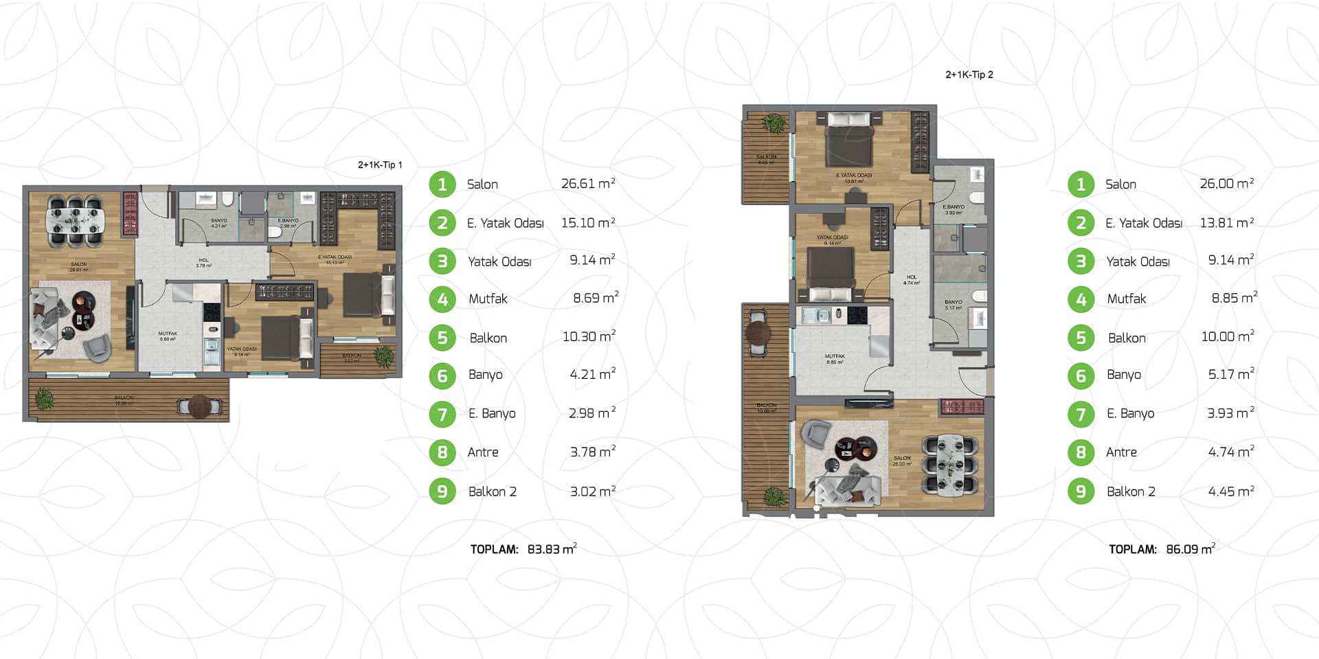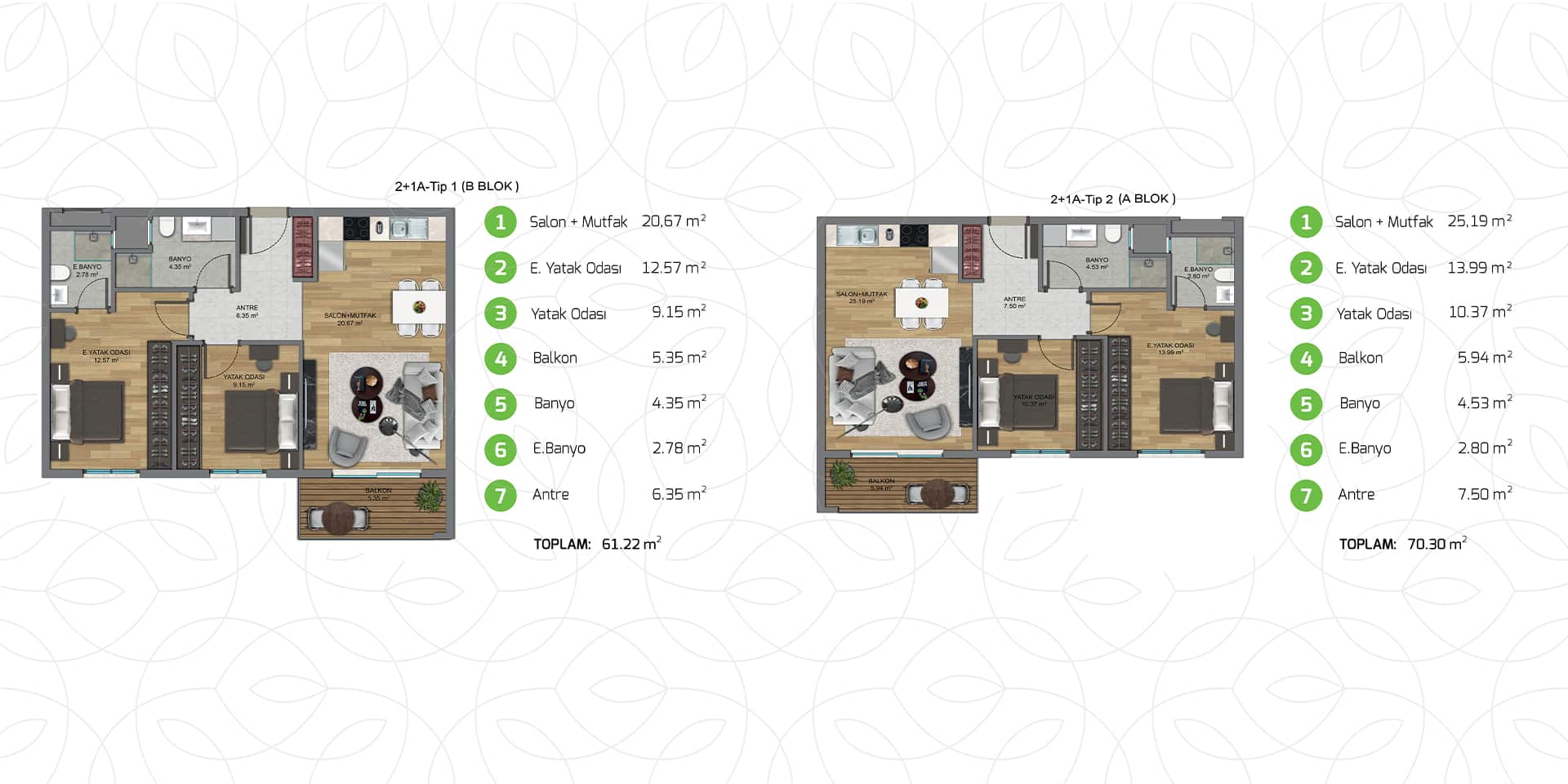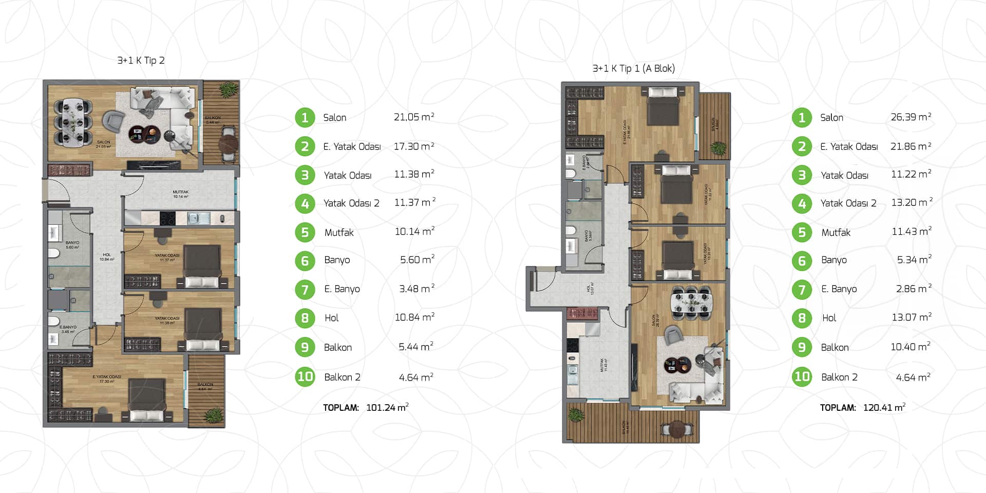 Park Yaşam Atlantis, her biri özenle tasarlanmış farklı daire konseptleri ile yaşam standartlarınızı yükseltiyor. Modern mimari ile harmanlanmış estetik detaylar, fonksiyonelliği ve zarafeti bir araya getiriyor.