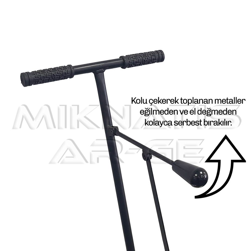 Pull the rubber T-handle to move the magnet away from the stainless steel scraper pan, which allows the collected metal to fall off easily, thus avoiding manual picking of the collected metal. Emptying of waste metals is done hands-free. No need to bend over to clean the magnet.