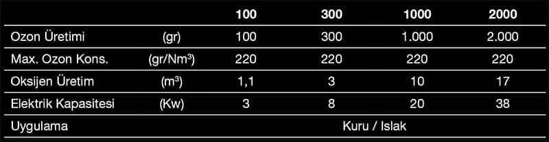 | Ozon Üretimi | (gr) | 300 |