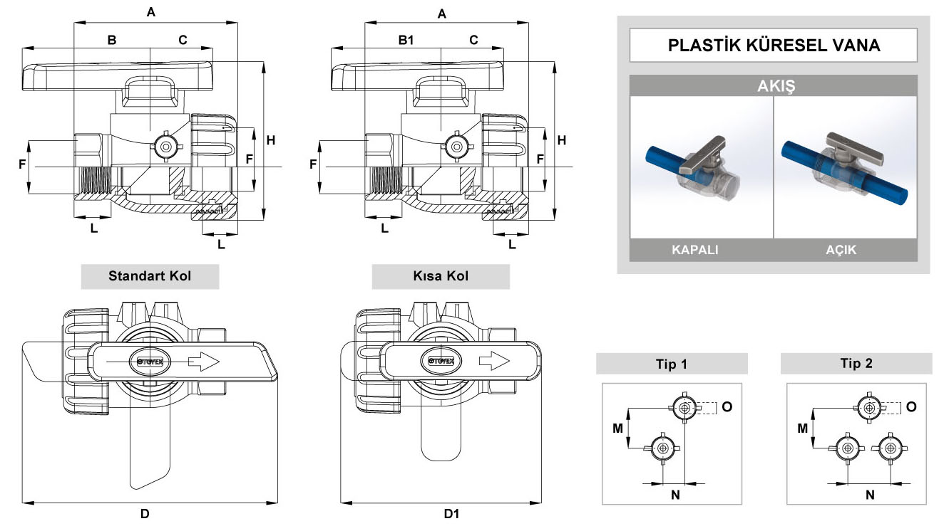 Standart Kol Kısa Kol F A B B1 C D D1 H L Tip M N O