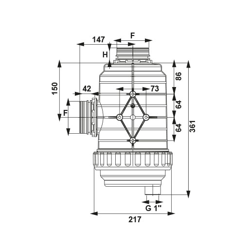 • Filtre tası üzerinde G 1″ dişi pasolu tahliye çıkışı (Tahliye deliği delinmelidir)